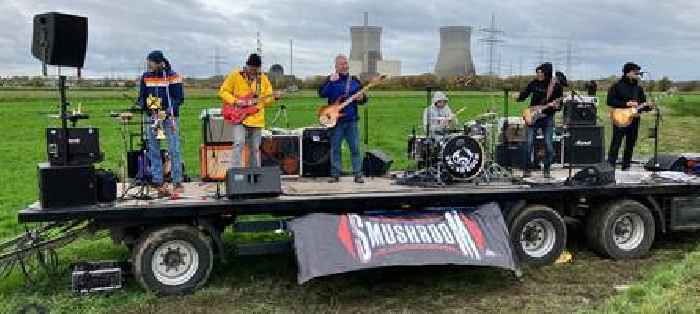 Rockkonzert vor kurioser Kulisse: Wie es zu dem „Kühlturm-Gig“ in Gundremmingen kamDie Gruppe „Smushroom“ aus der Region gab während der Sprengung am Samstag ein Konzert. Mehrere Medien teilten das Foto von dem besonderen Auftritt.