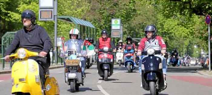 Von stilecht bis umweltschonend: Hunderte FCA-Fans fahren im Korso mit Vespas zum Stadion