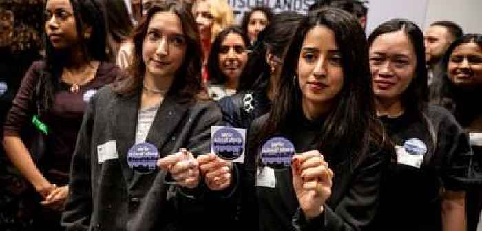Bei der Verleihung des Talisman-Preises verließen 30 Stipendiaten den Saal, als Friedrich Merz die Bühne betrat. Sie trugen Sticker mit der Aufschrift „Wir...