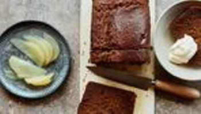 Ingwerbrot mit Birnen : Ein Schock, kein Schoki?Sieht aus wie Schokokuchen, doch drin sind weder Schokolade noch Kakao, nur Zuckerrübensirup. Zu diesem schön klebrigen Ingwerbrot passen pochierte Birnen und Sahne.