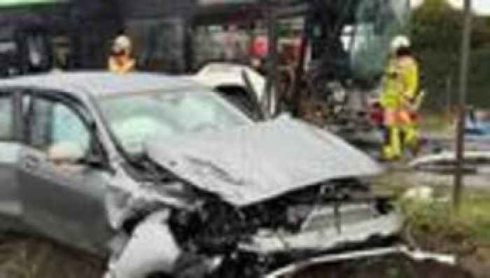 Unfall: Bus prallt mit Auto zusammen - wohl viele Kinder betroffen