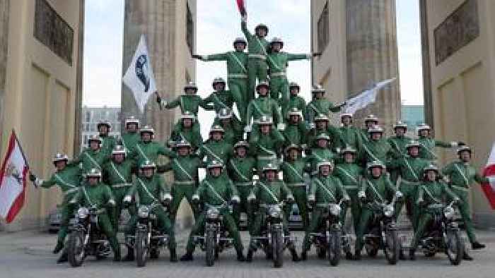 Motorradsportgruppe Berlin: Pyramiden aus PolizistenTollkühne Beamte auf ihren fahrenden Kisten: Die Motorradsportgruppe der Berliner Polizei sorgte bis in die 2000er-Jahre für Aufsehen.