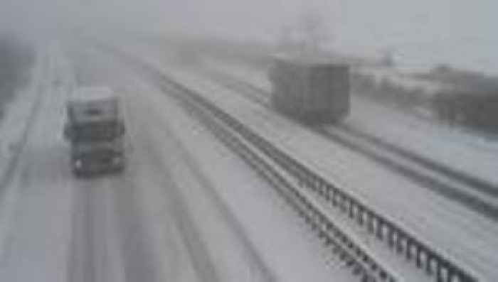 Wetter: Zwei Dutzend Lastwagen stecken auf A7 im Schnee fest