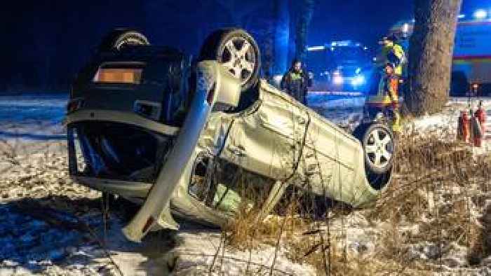 Schneeverwehungen: Pkw mit Mutter und Tochter landet auf dem Dach