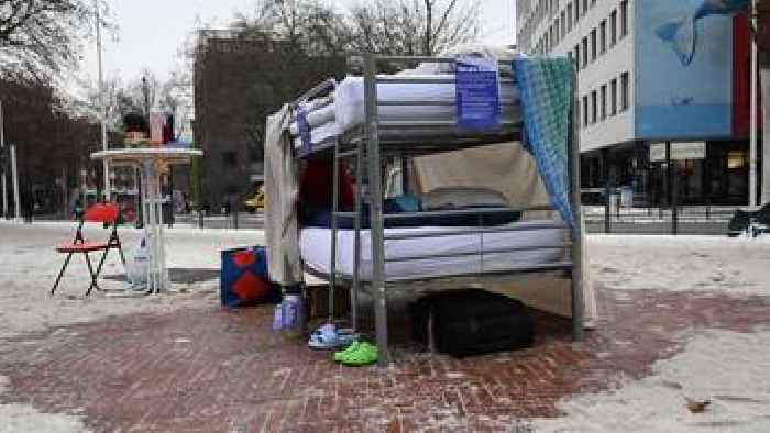 Leben auf drei Quadratmetern: Die Hoffnung wohnt auch hierMitten in der Harburger Innenstadt steht ein Bett. Worauf damit Geflüchtete, Aktivisten und Politiker die Passanten aufmerksam machen wollen.