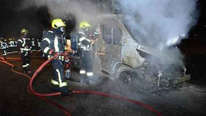 Verdacht auf Brandstiftung: Kleintransporter brennt komplett aus