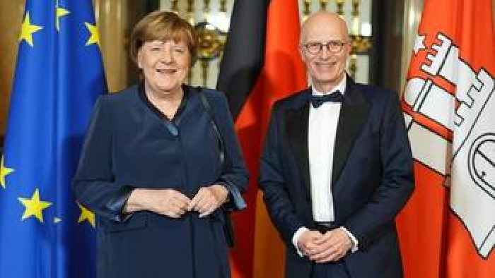 Merkel beim Matthiae-Mahl in Hamburg – der Auftritt der Altkanzlerin in Bildern