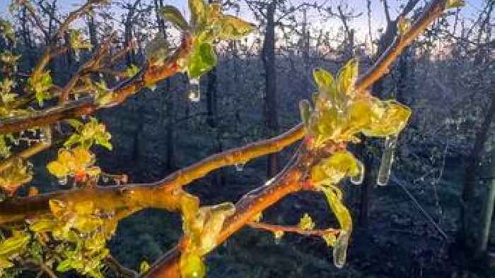 Trotz wolkenloser Nacht: Warum es im Alten Land dennoch regneteDa rieb sich so mancher Autofahrer in der Dämmerung ungläubig die Augen: Beregnungsanlagen trotz frostklarer Luft? Was genau dahinter steckt.