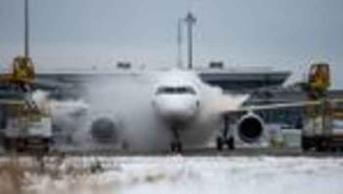 Flughafen Berlin: Alle Starts am Berliner Flughafen wetterbedingt gestopptWegen Eis und Schnee können am Hauptstadtflughafen in Berlin zurzeit keine Flugzeuge starten. Wie lang der Stopp dauert, ist laut dem Flughafen unklar.