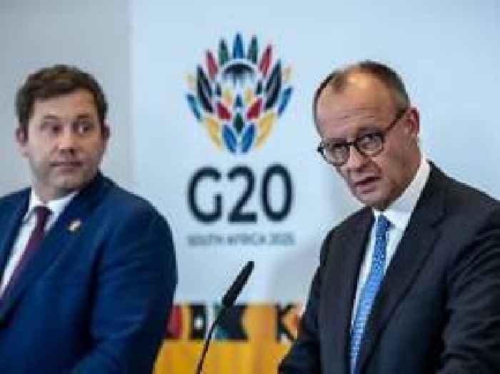 Hat hier keine Rolle gespielt: Merz witzelt beim G20-Gipfel über RentenstreitDer Streit um das Rentenpaket verfolgt den Kanzler auch bei seiner Reise zum G20-Gipfel in Johannesburg - zumindest in Form von Reporterfragen. Währenddessen appelliert sein Fraktionschef in Berlin, die eigenen Reihen zu schließen.