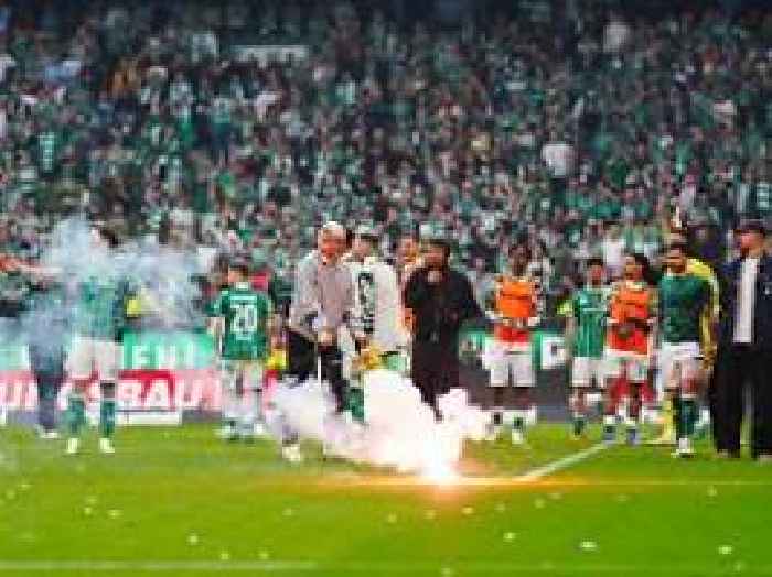 Vier Rote, viel Wut, Krawalle: "Krasse Geschosse": Raketenhagel überschattet Nordderby-Traumtore