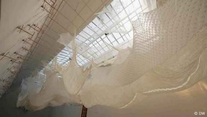 Mit einer imposanten gestrickten Installation ist Serbien auf der Architekturbiennale vertreten.