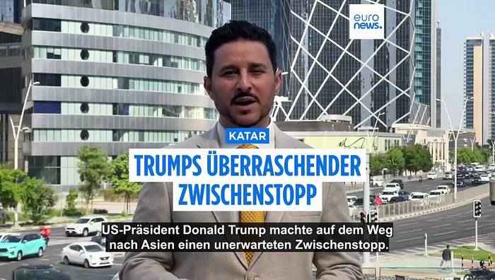Trumps überraschender Tankstopp in Katar Während eines kurzen Aufenthalts in Doha traf Trump mit dem Emir und dem Premierminister von Katar zusammen, um über den Frieden im Gazastreifen und regionale Diplomatie zu sprechen.