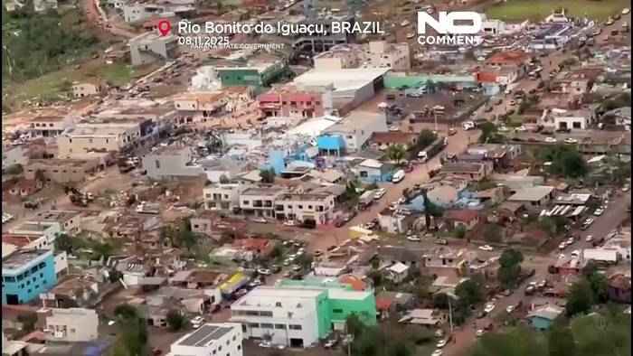 Video: Drohnenbilder zeigen großflächige Verwüstung: Tödlicher Tornado trifft Brasilien
