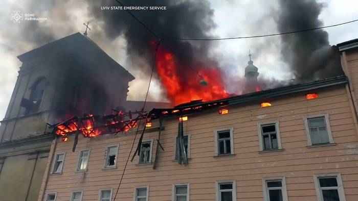 Video: Russischer Drohnenangriff beschädigt historische Altstadt von Lwiw in der Ukraine
