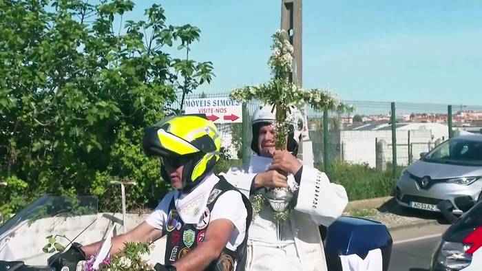 LESEN SIE MEHR : http://de.euronews.com/2026/04/06/portugal-biker-fahren-mit-pater-avelino-zum-ostersegen Abonnieren Sie!